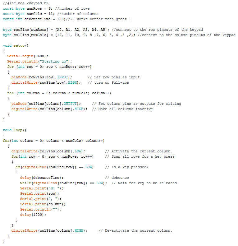 pin8 and 6 - pin10 and 12 are shunted to avoid inner and outer considération and to have a 6*11 matrix